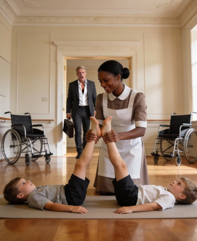 Evan Roth zatrzymał się tuż za progiem sali terapeutycznej, a jego ciało zareagowało szybciej, niż umysł zdążył ułożyć choć jedną spójną myśl. Aktówka wysunęła mu się z dłoni i uderzyła głucho o ścianę, lecz ledwie to zauważył. Wózki inwalidzkie, które zwykle stały przy oknie niczym cisi strażnicy, były odsunięte na bok, jakby nie należały już do tego miejsca. Na miękkiej, wyściełanej podłodze siedzieli jego bliźniaczy synowie, po turecku, z wyprostowanymi, wychudzonymi nogami przed sobą. Obok nich klęczała Rachel Monroe, a jej dłonie spoczywały lekko na ich łydkach, gdy mówiła do nich spokojnym, niemal nierealnym głosem.