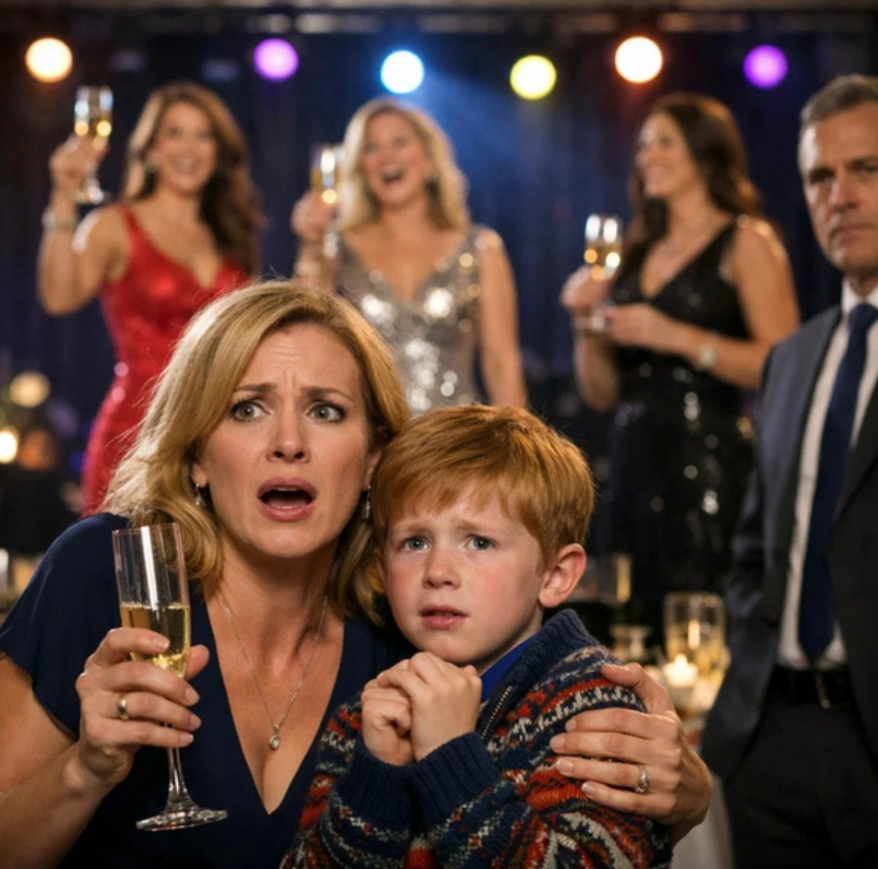 Moja mama, stojąca blisko sceny, uniosła kieliszek i dorzuciła półgłosem, ale wystarczająco głośno, by inni usłyszeli: