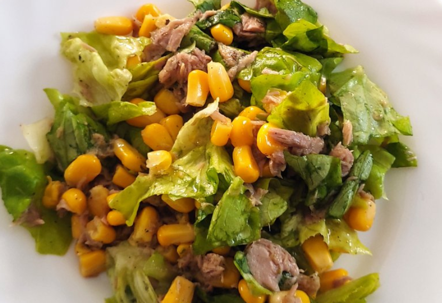 Połączenie chrupiącej sałaty, słodkiej kukurydzy, delikatnego tuńczyka i aromatycznego sosu tworzy harmonijną, apetyczną całość. To sałatka, która nie wymaga skomplikowanych składników ani długiego stania w kuchni, a mimo to zawsze smakuje świeżo i zachęcająco.