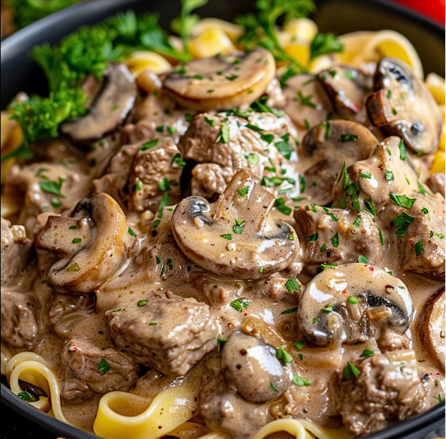 Ten aromatyczny i kremowy przepis na wołowinę z pieczarkami to idealna propozycja na szybki, sycący obiad dla całej rodziny. Delikatne, cienko pokrojone mięso w aksamitnym sosie śmietanowym z dodatkiem musztardy Dijon, sosu Worcestershire i podsmażonych pieczarek tworzy danie pełne głębi smaku. Podawane z makaronem jajecznym staje się pełnowartościowym posiłkiem, który przygotujesz w mniej niż godzinę.