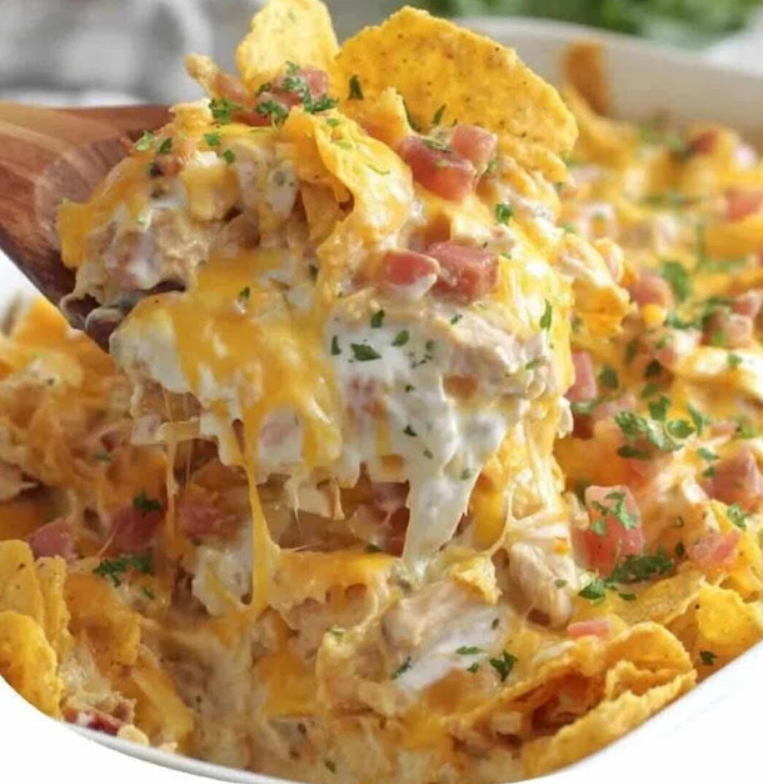- 4 szklanki pokruszonych chipsów Nacho Cheese Doritos (plus dodatkowa garść na wierzch)