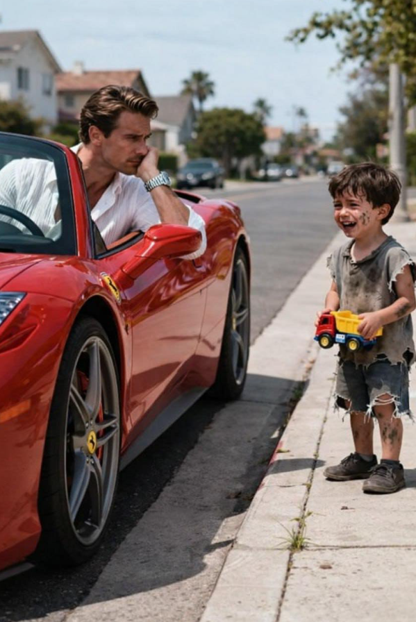 Wzrok chłopca wcale nie jest skupiony na twoim samochodzie. On patrzy, żeby sprawdzić, czy zaraz staniesz się kolejnym dorosłym, który odjedzie.