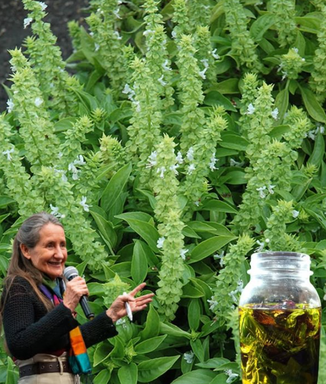 Jak używać: Umieść świeże kwiaty bazylii w czystej butelce, zalej oliwą lub jasnym octem i odstaw na 2–3 tygodnie w chłodne, ciemne miejsce. Po przecedzeniu używaj jako dodatku do potraw.