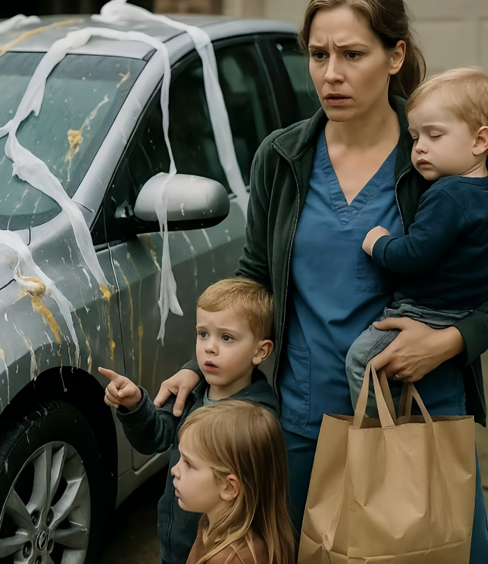 Następnego ranka nalewałam dzieciom płatki, gdy spojrzałam przez okno. Serce ścisnęło mi się w jednej chwili. Mój samochód — jedyny, jaki miałam — był cały w jajkach i papierze toaletowym.