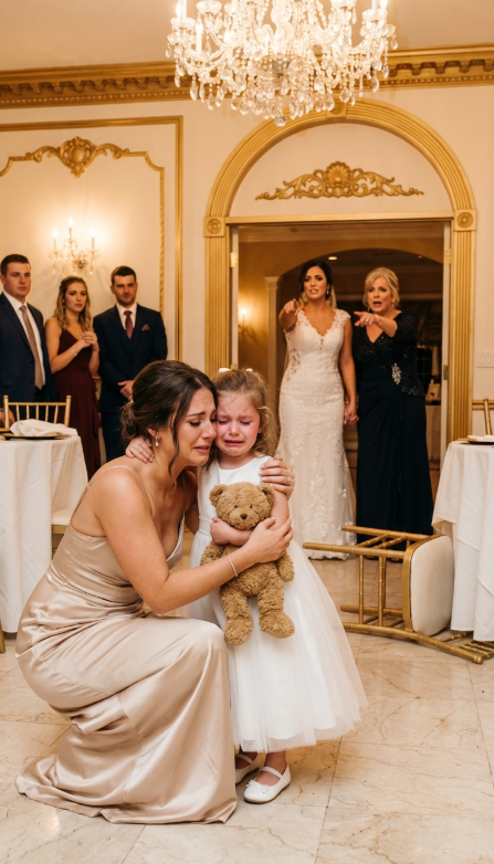 Poczułam delikatne szarpnięcie za rękę. Spojrzałam w dół. Stała tam Mia, moja ośmioletnia córka. Wyglądała jak leśna wróżka w sukience druhny, z wiankiem z gipsówki na włosach. Jej wielkie brązowe oczy były jednak pełne łez.
