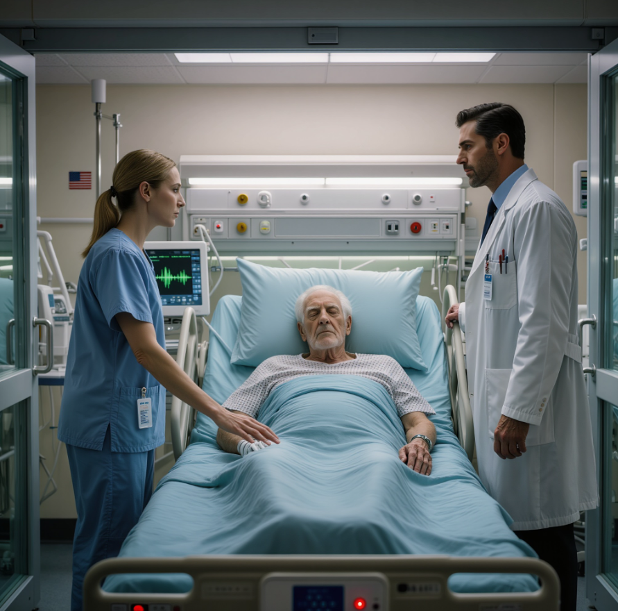 Doktor Ethan Carter stał przy szklanej ścianie oddziału intensywnej terapii, z rękami splecionymi za plecami, wpatrzony w pacjenta leżącego po drugiej stronie.