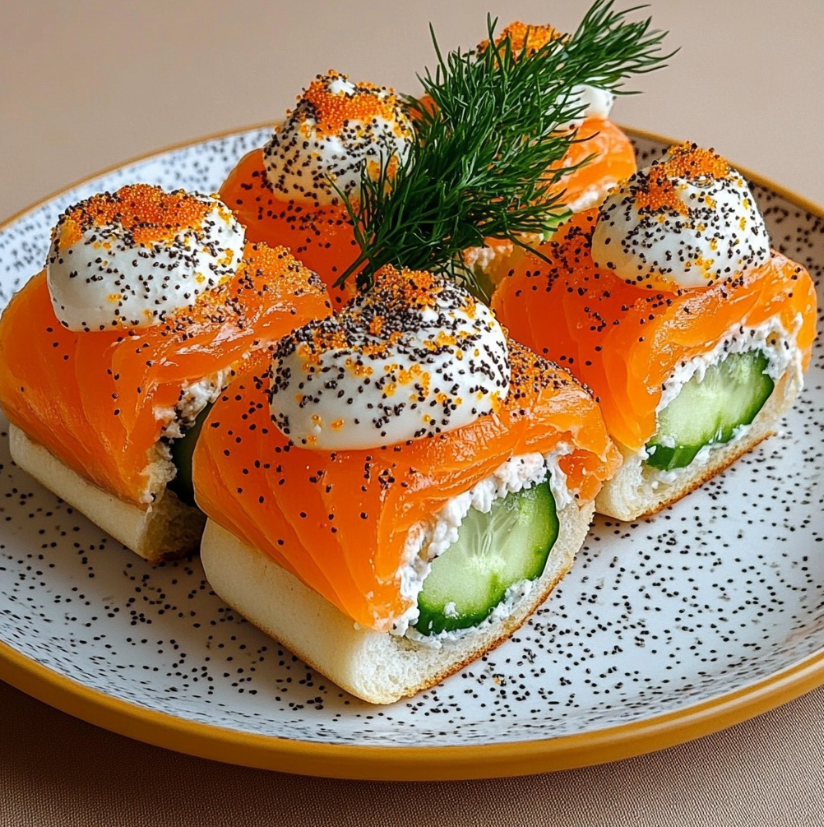 Mini bułeczki z łososiem wędzonym i kremowym serkiem to elegancka, a jednocześnie bardzo prosta propozycja, która doskonale sprawdzi się jako przystawka, przekąska na przyjęcie lub element bufetu. Połączenie delikatnej, lekko słodkiej bułeczki typu brioche z wyrazistym łososiem, świeżym koperkiem i chrupiącym ogórkiem daje harmonijny smak oraz atrakcyjny efekt wizualny. To danie nie wymaga obróbki termicznej i można je przygotować w krótkim czasie, zachowując przy tym wrażenie kuchni restauracyjnej.