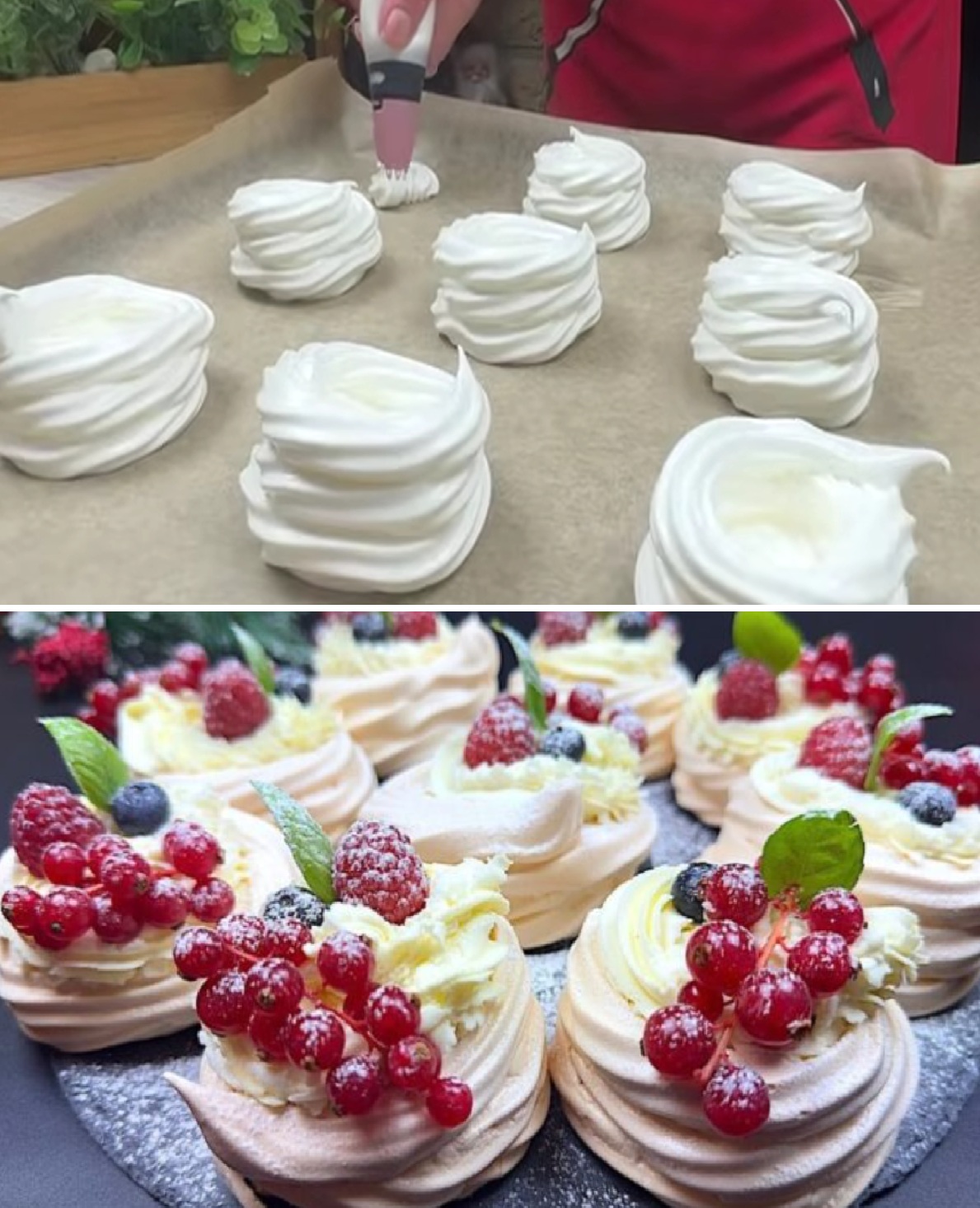 Mini torty Pavlova to jeden z tych deserów, które robią ogromne wrażenie, a jednocześnie są zaskakująco lekkie i delikatne. Chrupąca z zewnątrz beza, miękka i lekko piankowa w środku, w połączeniu z kremowym nadzieniem i świeżymi owocami tworzy deser, który niemal zawsze znika ze stołu w mgnieniu oka.