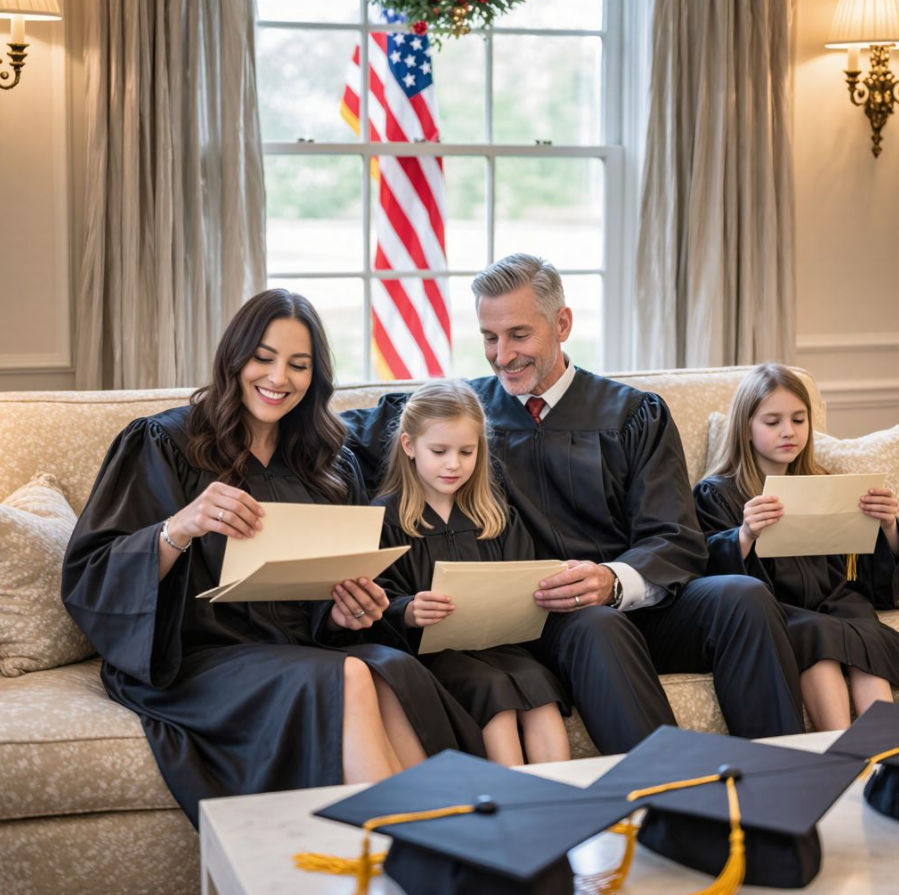 Po ceremonii zobaczyłyśmy rodzinę przy bramie. Mama wyglądała, jakby miała pęknąć z dumy. Ruszyła biegiem… prosto do Lily. Objęła ją mocno i wręczyła elegancką, kremową kopertę przewiązaną czerwoną wstążką.