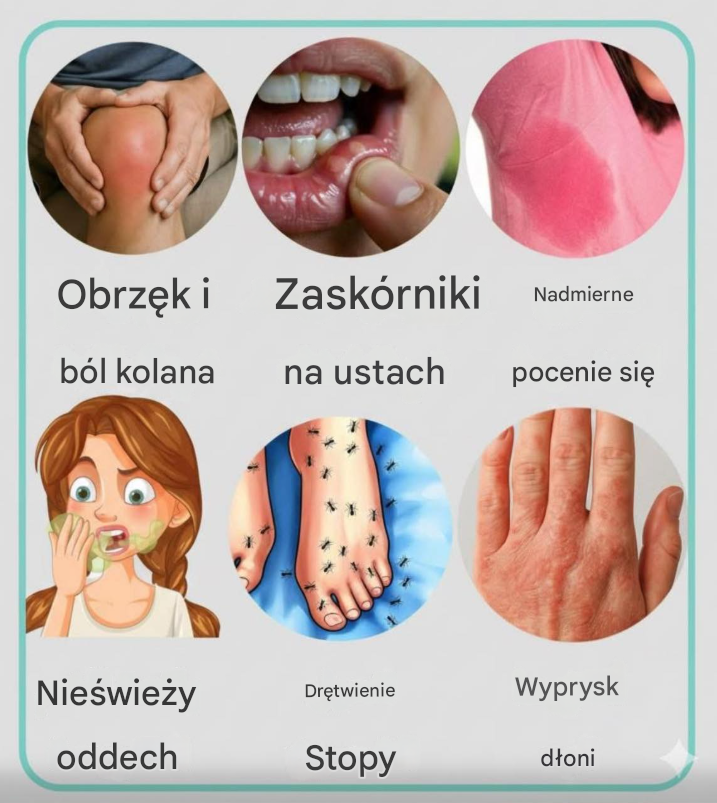 Poniżej przedstawiono najczęściej spotykane problemy zdrowotne wraz z ich potencjalnymi przyczynami. Opis ma charakter informacyjny i służy lepszemu rozpoznaniu zależności między objawami a stanem organizmu.
