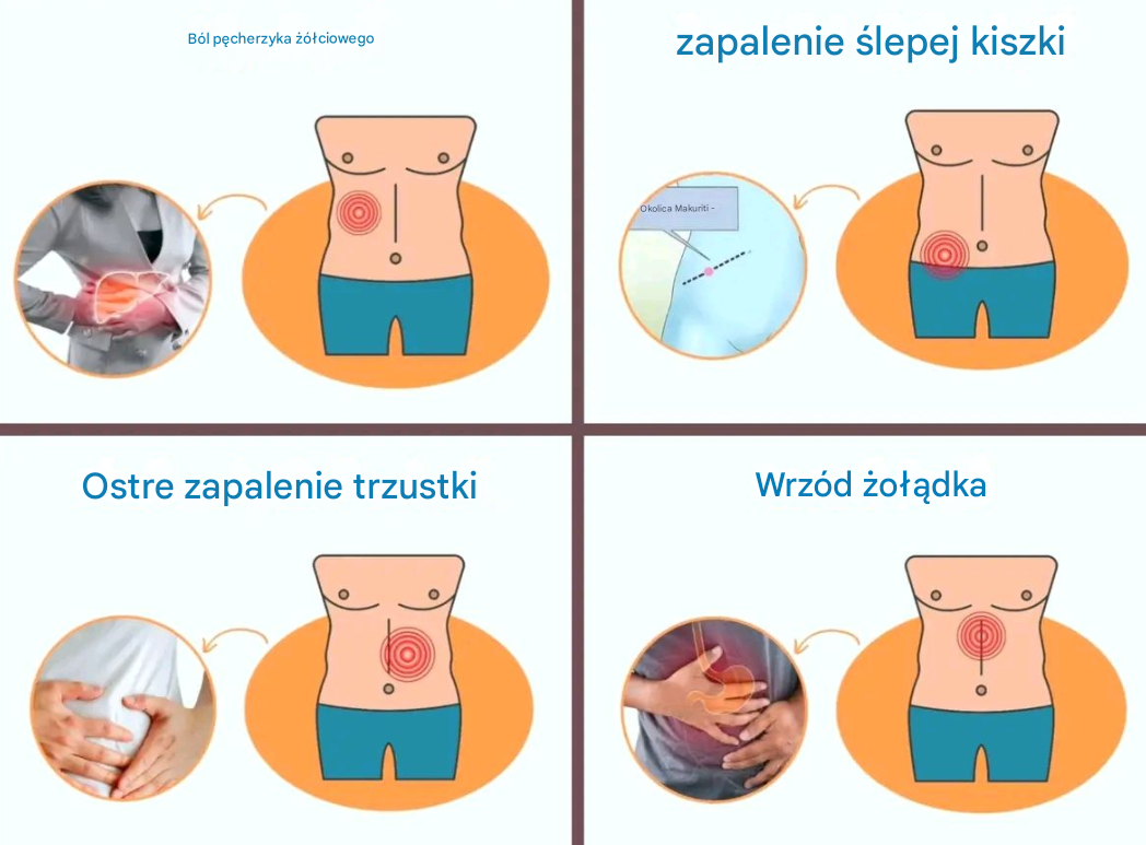 Miejsce bólu: prawa górna część brzucha.