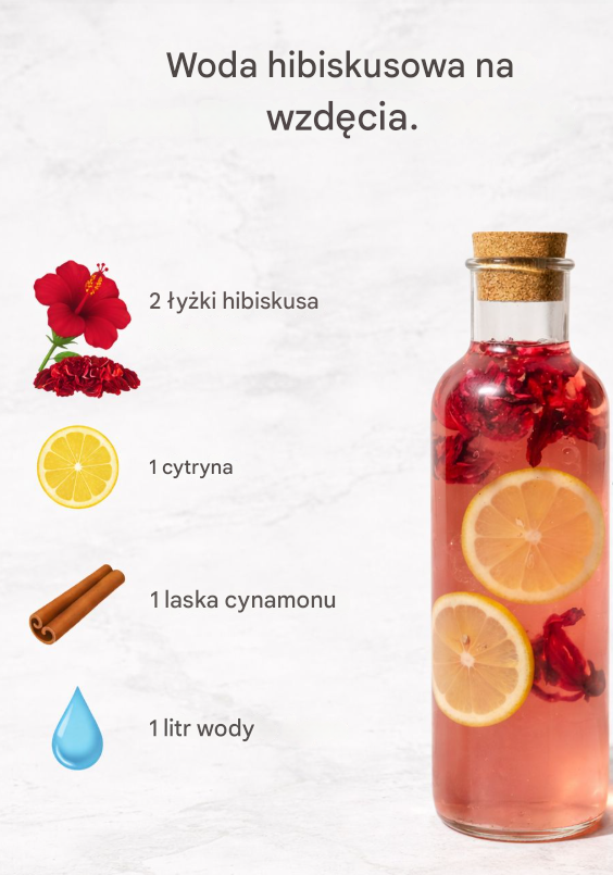 Woda z hibiskusa od dawna jest ceniona w różnych kulturach jako napój wspierający uczucie lekkości i redukcję zatrzymywania wody w organizmie. Połączenie suszonego hibiskusa, cytryny i cynamonu tworzy napój, który nie tylko orzeźwia, ale też uprzyjemnia codzienną rutynę dbania o siebie.