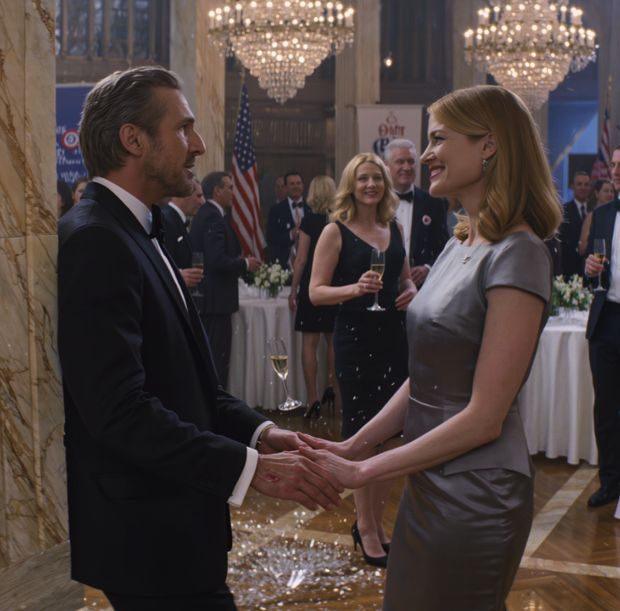 W sali balowej pachniało pieniędzmi — politurą, perfumami i jakąś kwiatową nutą wtłaczaną przez wentylację. Trio jazzowe grało przy oknach, a światła odbijające się od rzeki migotały w szkle jak część dekoracji.