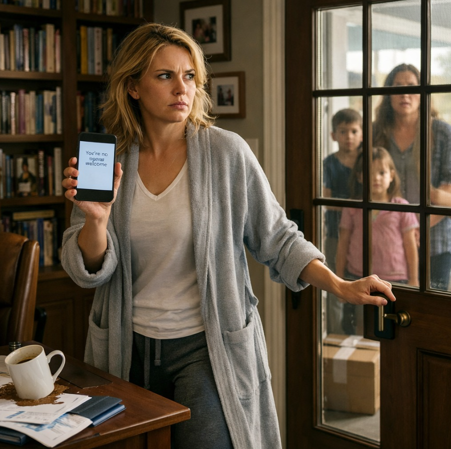 Sarah, moja starsza siostra, stała najbliżej drzwi, jakby należały do niej. Za nią Tom, z zaciśniętą szczęką i skrzyżowanymi ramionami. Moi rodzice po bokach — jak świadkowie na rozprawie. A dzieci, Emma i Jake, skulone z boku, zagubione i nieszczęśliwe.