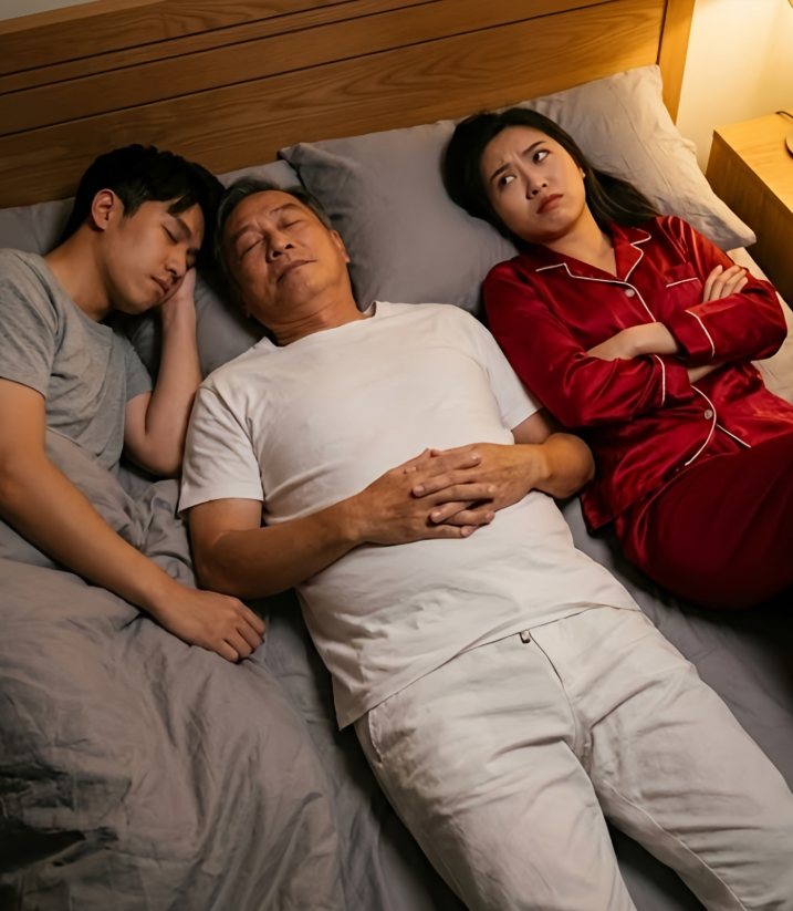 „Kochanie… to tradycja rodzinna” — wyszeptał. „Pierwszej nocy ‘mąż honorowy’ śpi między nowożeńcami, żeby pobłogosławić związek i zagwarantować, że urodzi się syn”.