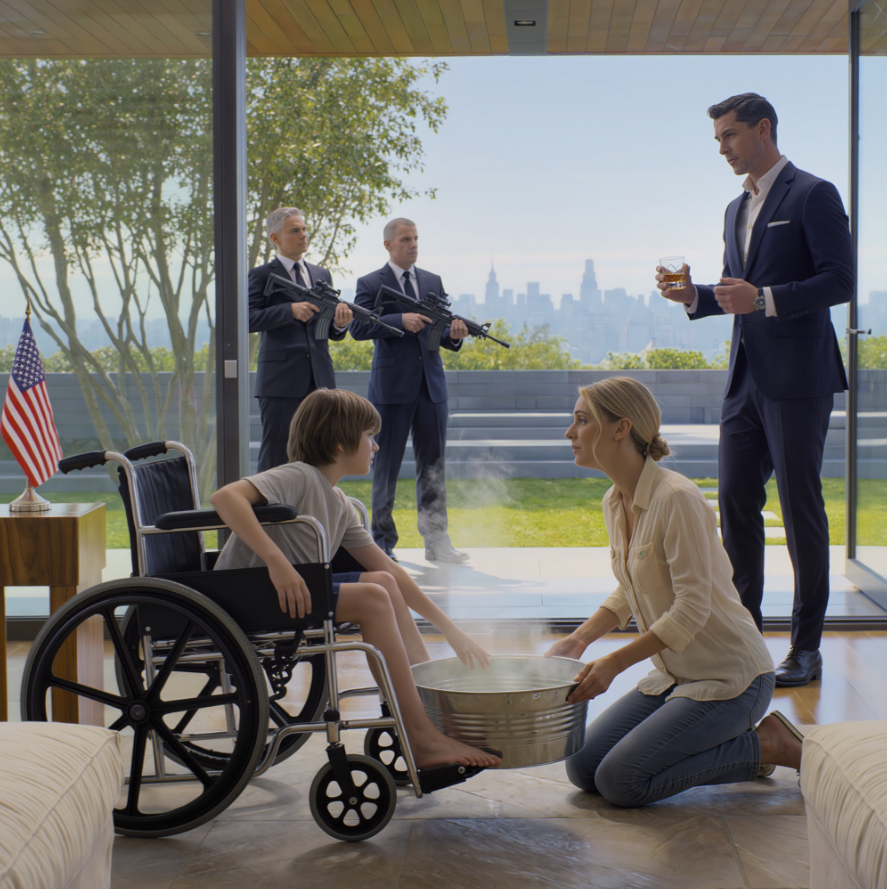 Młoda kobieta, może pod koniec dwudziestki, w znoszonych ubraniach, z wgniecioną aluminiową miską, klęczała przed wózkiem inwalidzkim jego syna, Ethana. Wlewała do miski ciepłą wodę, po czym patrzyła chłopcu prosto w oczy i mówiła z absolutną pewnością, jakby wypowiadała najoczywistszą prawdę świata.