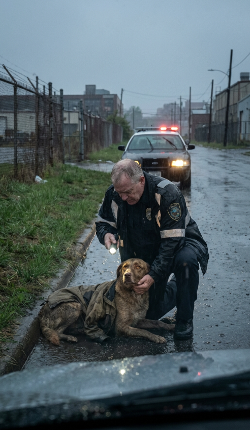 Zdjąłem policyjną kurtkę, ciężką i wodoodporną, i ostrożnie owinąłem nią tułów psa, zabezpieczając zniszczone kończyny przed ruchem. Gdy go podniosłem, był przerażająco lekki – same kości, strach i uparta wola przetrwania. Cicho ostrzegłem go, że to będzie bolało, bo kłamstwo wydało mi się brakiem szacunku.
