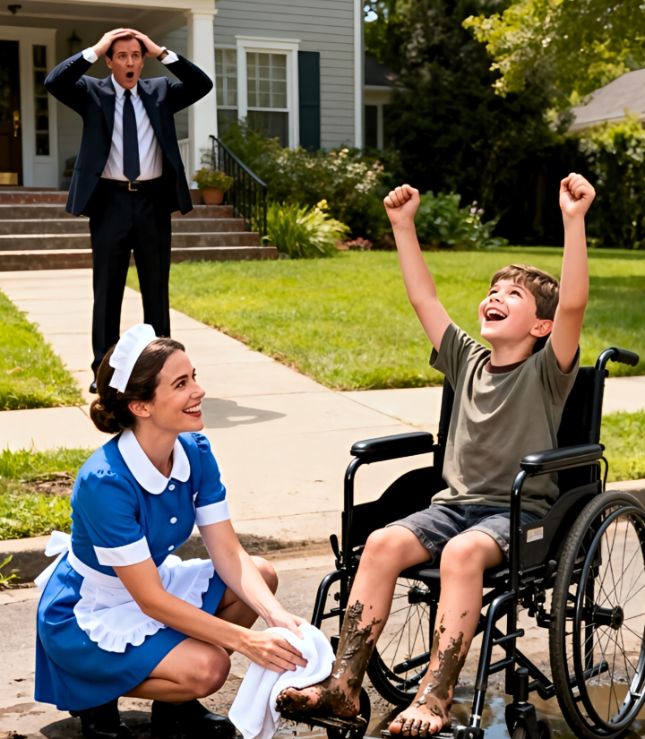 Widok, który zastał, sprawił, że zamarł w miejscu. Nowa opiekunka, Maria, zatrudniona zaledwie dwa tygodnie wcześniej, klęczała obok wózka Ethana. Chłopiec śmiał się głośno i beztrosko, jakby zapomniał o wszystkim, co go dotąd przygniatało.