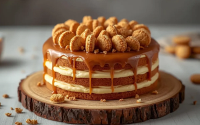 Kremowy tort karmelowy z ciasteczkami Lotus to prawdziwa oda do słodkiej przyjemności. Ten deser łączy w sobie głębię aksamitnego karmelu,…