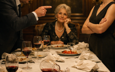 Powietrze w prywatnej sali restauracyjnej nie pachniało żałobą. Pachniało pieniędzmi. Starymi pieniędzmi, zmieszanymi z ostrą nutą dojrzałego chianti i ciężkim,…