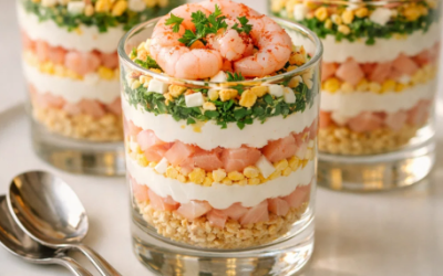 Tiramisu z krewetkami w pucharkach to wyrafinowana i zaskakująca przystawka, która w kreatywny sposób nawiązuje do klasycznego włoskiego deseru, prezentując…