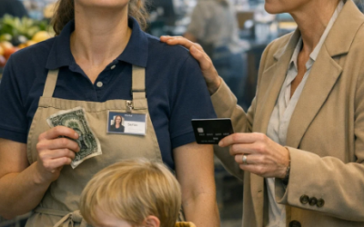 Przy kasie w luksusowym supermarkecie moja mama zapytała spokojnym, ale zdziwionym głosem: „Gdzie jest twoja karta VIP? Dlaczego płacisz gotówką?”…