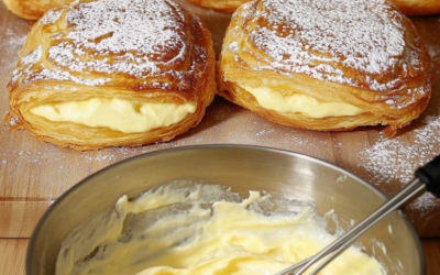 Pyszne ciasto francuskie z kremem waniliowym! Odkryj ten nieodparty deser! 🍰✨ Składniki: 45g cukru 2 jajka 1 opakowanie mrożonego ciasta…