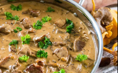 Gulasz z filetu wieprzowego z kurkami