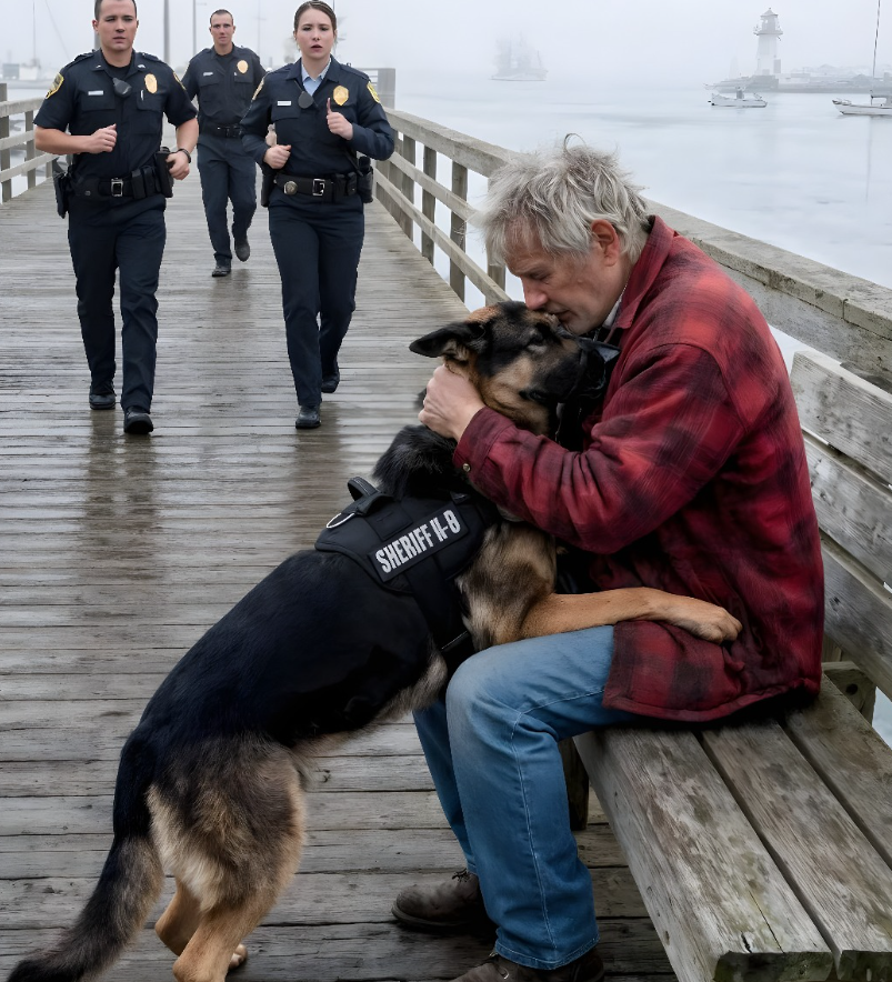 Przytulony do niego, bez smyczy i bez widocznej identyfikacji, stał owczarek niemiecki. Nie wyglądał na bezdomnego psa. W jego spojrzeniu było coś głębokiego: lojalność, pamięć i spokojna czujność, która zdradzała długie doświadczenie.