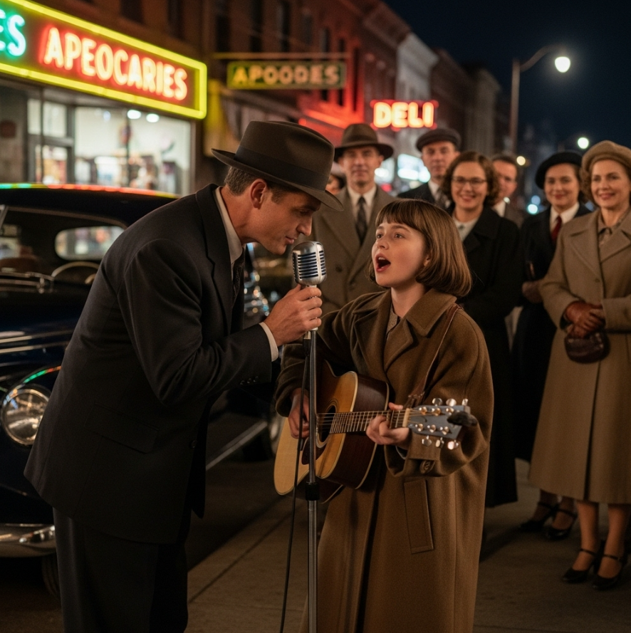 Głos unosił się w zimnym nocnym powietrzu, przecinając klaksony samochodów i odgłosy kroków. Dziecko śpiewało — delikatnie, ostrożnie — jego piosenkę. Nie tę wygładzoną, znaną z płyt, ale wolniejszą, drżącą, jakby każde słowo kosztowało ją ogromny wysiłek.