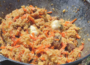Dziś skupimy się na tadżyckim pilawie, który według naszych przyjaciół z Tadżykistanu wyróżnia się prostotą. W tej kuchni nie stosuje się wielu przypraw – dominują naturalne smaki składników, podkreślone jedynie czarnym pieprzem i kminkiem. Charakterystyczną cechą jest również zachowanie proporcji 1:1, czyli po jednym kilogramie każdego głównego składnika, z wyjątkiem oleju. Dzięki temu pilaw jest treściwy, sycący i idealnie zbalansowany.