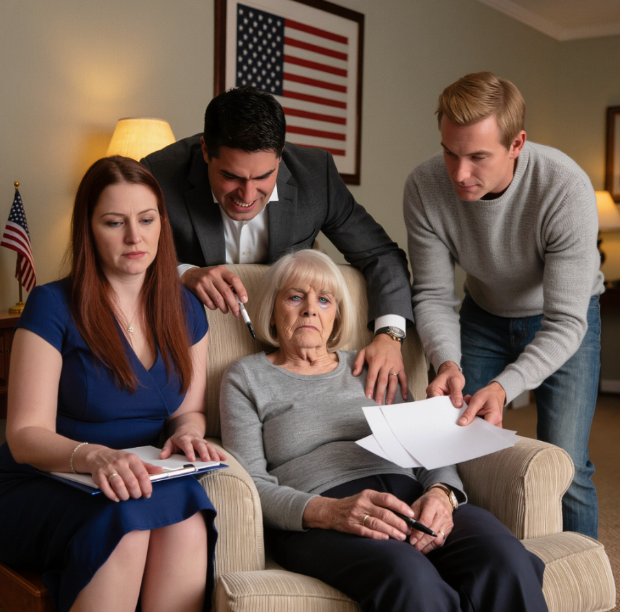 Moja trójka dzieci stała w salonie, uśmiechając się z wyższością, gdy przesunęły po stoliku kawowym czterostronicową „umowę życiową”, jakby właśnie robiły mi największą przysługę świata.
