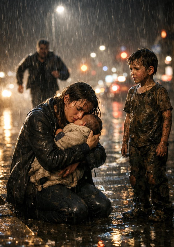 Kobieta instynktownie przysunęła go bliżej, starając się osłonić zarówno jego, jak i swoje niemowlę przed deszczem. Jedną ręką przytulała noworodka, drugą próbowała ogrzać zmarznięte dłonie chłopca. W jej głowie kłębiły się myśli. Wiedziała, że musi pomóc, ale nie była pewna, co zrobić najlepiej i najszybciej.