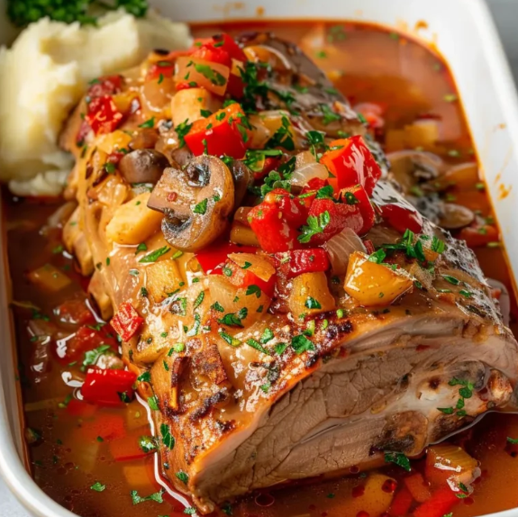 Porc duszony z pieczarkami i pomidorami to jedno z najbardziej klasycznych i lubianych dań francuskiej kuchni domowej. Ten sycący, aromatyczny posiłek w pełni oddaje ducha tradycyjnego gotowania: prostotę składników, cierpliwość w przygotowaniu oraz głębię smaku, która powstaje dzięki długiemu, powolnemu duszeniu. Delikatna wieprzowina, gotowana w bogatym sosie na bazie pomidorów, cebuli, czosnku i pieczarek, staje się niezwykle miękka i soczysta, a całość zachwyca aksamitną, esencjonalną konsystencją.