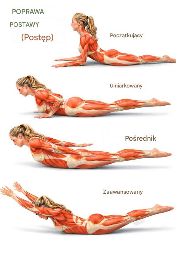 Chcesz poprawić postawę ciała, wzmocnić plecy i zmniejszyć codzienne dolegliwości bólowe bez wychodzenia z domu? Ćwiczenie Postura Stali to prosta, ale bardzo skuteczna progresja ruchów, która angażuje kręgosłup, odcinek lędźwiowy, pośladki oraz mięśnie brzucha — i to całkowicie bez użycia sprzętu.