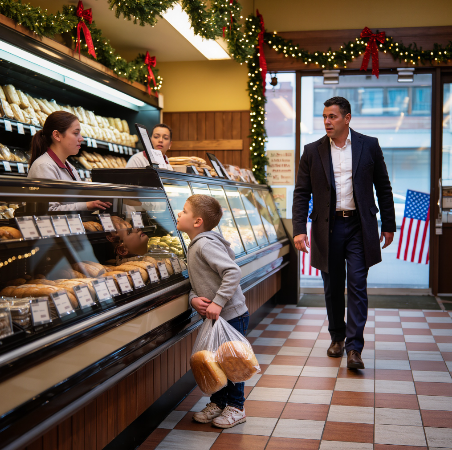 „Mama dzisiaj nie jadła… czy moglibyście podzielić się czerstwym chlebem?” — zapytał chłopiec dokładnie w chwili, gdy do piekarni wszedł samotny ojciec i prezes wielkiej firmy.