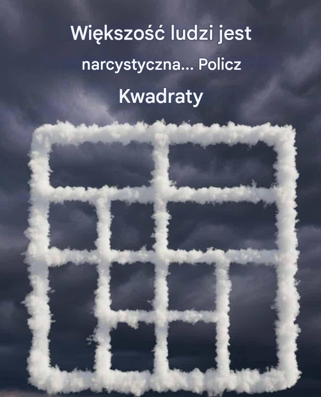W internecie od pewnego czasu krąży niepozorna łamigłówka wizualna. Przedstawia ona jedynie kontur chmury wypełniony regularną, kwadratową siatką. Obrazek ten bardzo często pojawia się w towarzystwie prowokującego zdania: „Większość ludzi jest narcystyczna”, po którym następuje wyzwanie: „Policz kwadraty”.