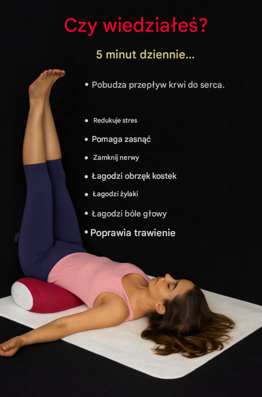 Uniesienie nóg powyżej poziomu serca sprzyja naturalnemu odpływowi krwi żylnej, co może przynieść ulgę zmęczonym nogom i zmniejszyć uczucie ciężkości. Jednocześnie pozycja ta wysyła do układu nerwowego sygnał bezpieczeństwa, pomagając organizmowi przejść w tryb regeneracji.