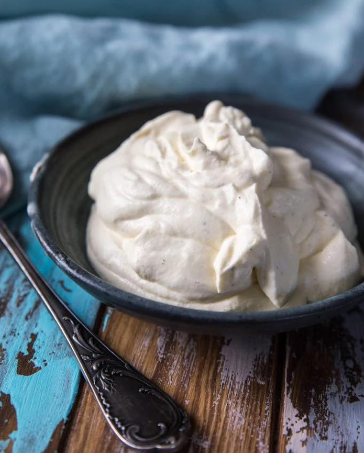 Skoro nadszedł czas na ciasto z wszystkimi świeżymi jagodami i rabarbarem, muszę polecić ten przepyszny krem. Prosty, surowy, ubity budyń, o wiele smaczniejszy niż ten ze sklepu.
