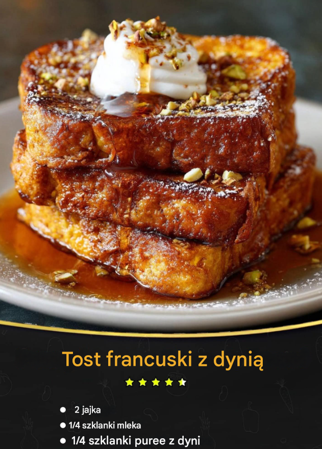 To danie idealnie sprawdza się podczas powolnych, weekendowych poranków, świątecznych brunchów lub wtedy, gdy masz ochotę na coś wyjątkowego, a jednocześnie prostego w przygotowaniu. Przepis bazuje na łatwo dostępnych składnikach, które często mamy w kuchni, a mimo to efekt końcowy jest na tyle elegancki i sycący, że bez wahania można podać go gościom. Podany z masłem, syropem klonowym, bitą śmietaną lub orzechami, przywołuje nostalgiczne, domowe wspomnienia i sprawia, że jesienne śniadania stają się naprawdę niezapomniane.