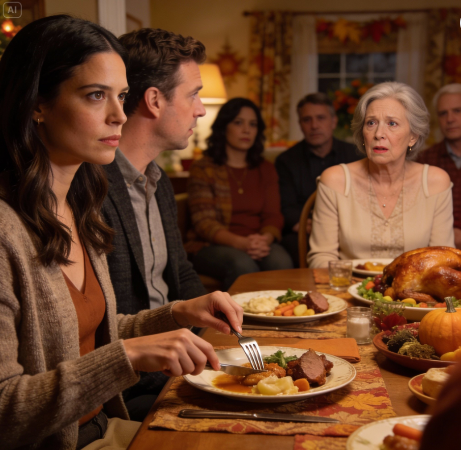Podczas kolacji w Święto Dziękczynienia mój mąż nagle zwrócił się do mnie i zapytał: