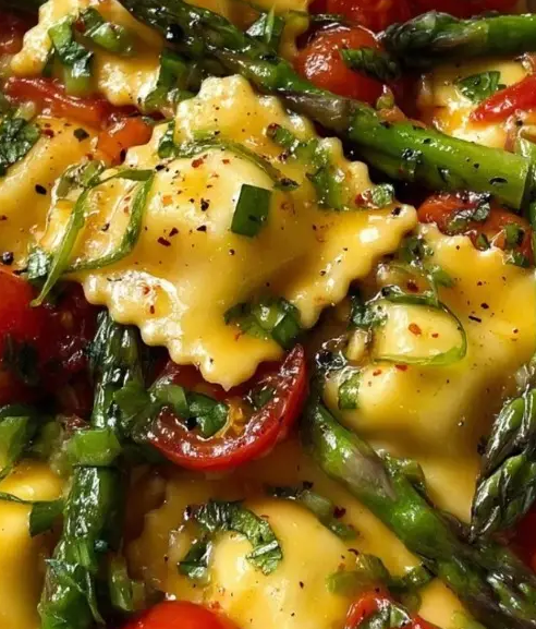 Ravioli z pomidorami, szparagami, czosnkiem i ziołami to wyraziste, a jednocześnie lekkie danie, które doskonale łączy świeżość sezonowych warzyw z komfortem delikatnego makaronu. Jest szybkie w przygotowaniu, eleganckie w formie i niezwykle uniwersalne – sprawdzi się zarówno podczas zabieganego tygodnia, jak i na spokojną, weekendową kolację z bliskimi.