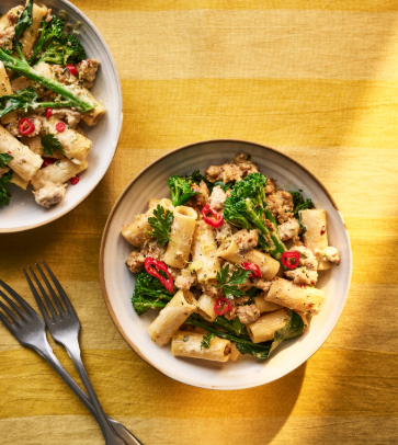 Rigatoni z kiełbasą i brokułami