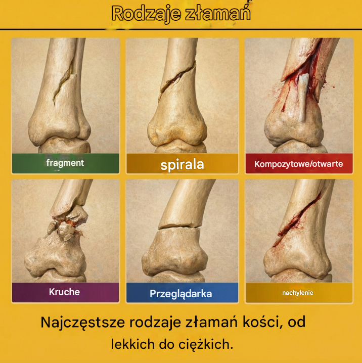 Złamanie kości dochodzi do uszkodzenia struktury kostnej, gdy kość pęka lub ulega przerwaniu w wyniku urazu, przeciążenia albo osłabienia jej wytrzymałości. Tego typu urazy mogą mieć bardzo różny charakter – od niewielkich pęknięć, które goją się stosunkowo szybko, aż po poważne złamania wymagające pilnej interwencji chirurgicznej. Lekarze klasyfikują złamania według sposobu, w jaki doszło do przerwania kości, co pozwala na trafną diagnozę, właściwy dobór leczenia oraz skrócenie czasu rekonwalescencji.