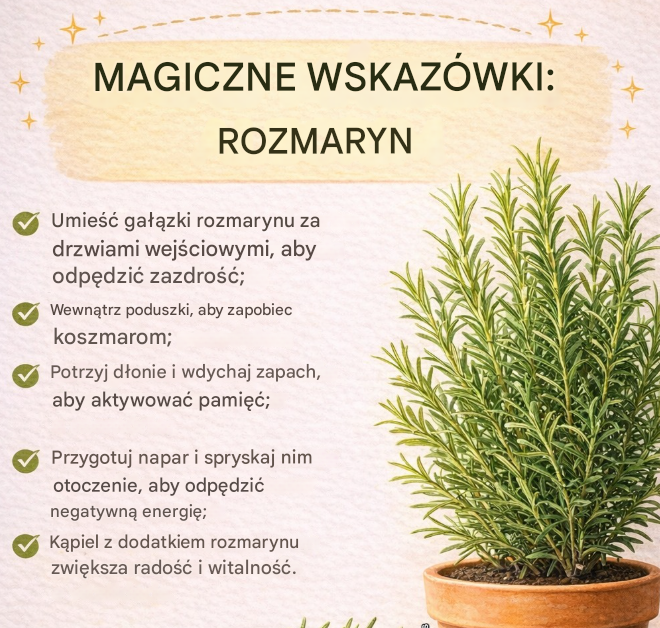 Jeśli lubisz tradycyjne praktyki i zapachy, które wprowadzają spokój, harmonię i poczucie lekkości, rozmaryn może stać się Twoim codziennym sprzymierzeńcem. Ta niepozorna roślina od wieków ceniona jest za swój aromat i pozytywne skojarzenia, jakie wywołuje – zarówno w domu, jak i w codziennym samopoczuciu. Rozmaryn jest prosty w użyciu, łatwo dostępny i nie wymaga skomplikowanych rytuałów, by wprowadzić do przestrzeni przyjemną atmosferę.