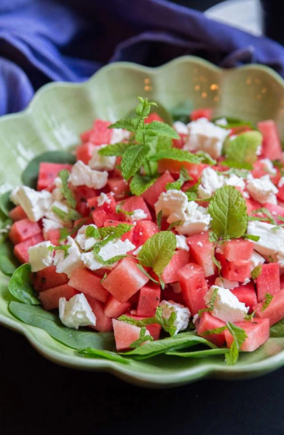 To superprosta sałatka, którą przygotowuje się w mgnieniu oka! Używam szpinaku, arbuza i sera feta, a całość posypuję świeżymi ziołami. To prawda, że najprostsze składniki są często najsmaczniejsze!