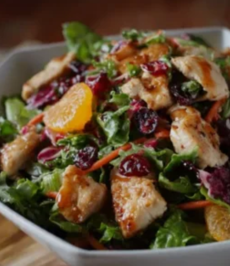 Sałatka z grillowanym kurczakiem, żurawiną i cytrusami to propozycja świeża, kolorowa i doskonale zbalansowana pod względem smaków. Łączy w sobie soczyste, złociste kawałki kurczaka z chrupiącymi liśćmi sałaty, delikatnie kwaskowatą żurawiną oraz pełnymi soku cząstkami cytrusów. Całość dopełnia łagodny, aromatyczny dressing, który nadaje potrawie harmonii, nie dominując nad naturalnym smakiem składników.