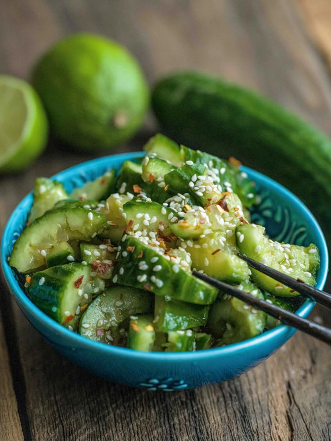 Sałatka z ogórków była prawdziwym hitem zeszłego roku i jak zwykle przegapiłam ją, haha. Ale dzisiaj nabrałam ochoty na sałatkę z rozgniecionych ogórków i była naprawdę przepyszna! Rozgniata się ogórki przed krojeniem, żeby wchłonęły mnóstwo smaku z sosu, spróbuj tego!