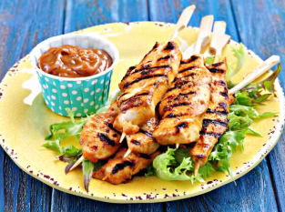 Klasycznie satay podaje się z domowym sosem orzechowym, który doskonale uzupełnia intensywność marynaty i podkreśla smak mięsa. W połączeniu ze świeżą sałatką danie tworzy pełnowartościowy, aromatyczny posiłek, który sprawdzi się zarówno jako danie główne, jak i efektowna przekąska.