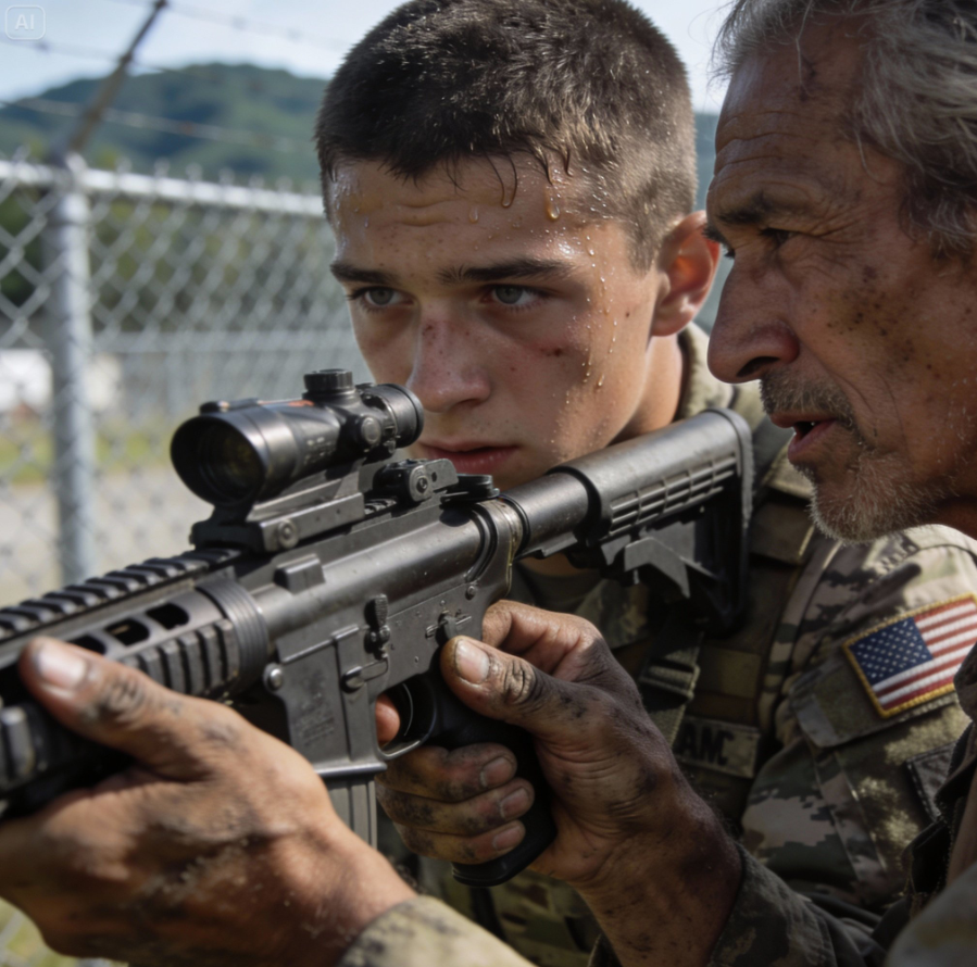 „Dobrze” – powiedziałem, poprawiając jego chwyt. „Karabin nie jest twoim wrogiem. Odrzut jest problemem tylko wtedy, gdy z nim walczysz”.